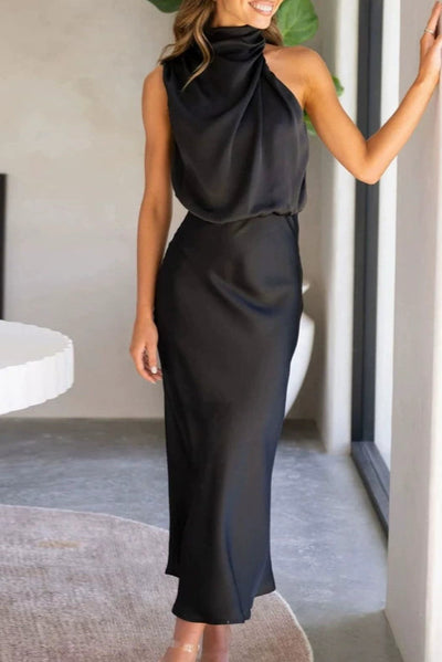 BENTHE™ | LONG SATIN HALTERNECK DRESS