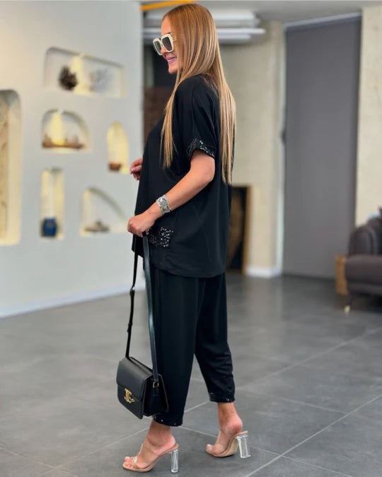 The GALLEY™ Stylish 2 Piece Set keeps you fashionable and comfortable with its sophisticated design. Featuring a loose-fit V-neck top and matching trousers, this set is perfect for any occasion. Designed with a touch of sparkle, it adds glamour while ensuring all-day ease. Made with high-quality crystal fabric, it offers a flattering silhouette and a breathable feel.